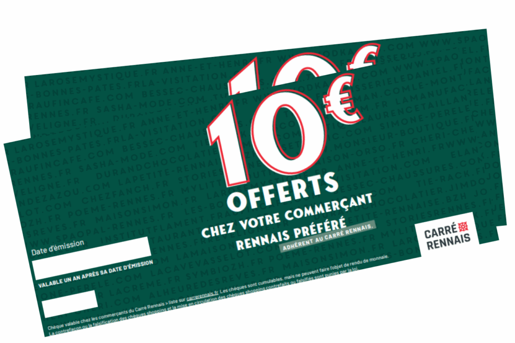 Offrez la liberté de choisir grâce aux bons d’achat du Carré Rennais ! Valables dans plus de 170 commerces du centre-ville, ces bons sont le cadeau idéal, sans tracas de taille ou de choix spécifique !         Déco, vêtements, restaurant, beauté, jeu…Faites plaisir à ceux que vous aimez selon leurs envies parmi une multitudes de boutiques uniques !